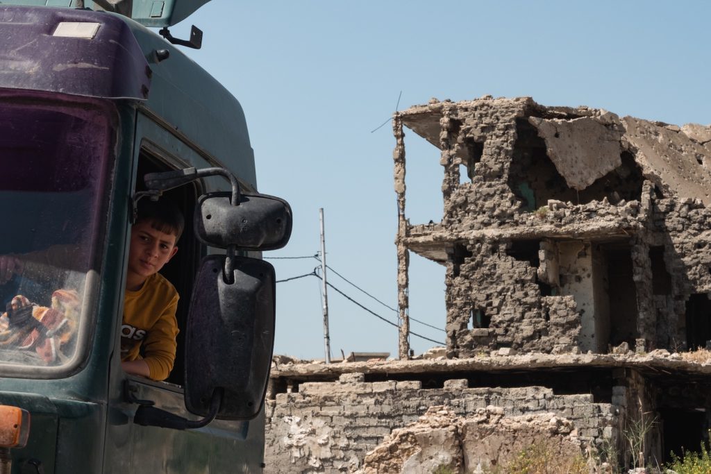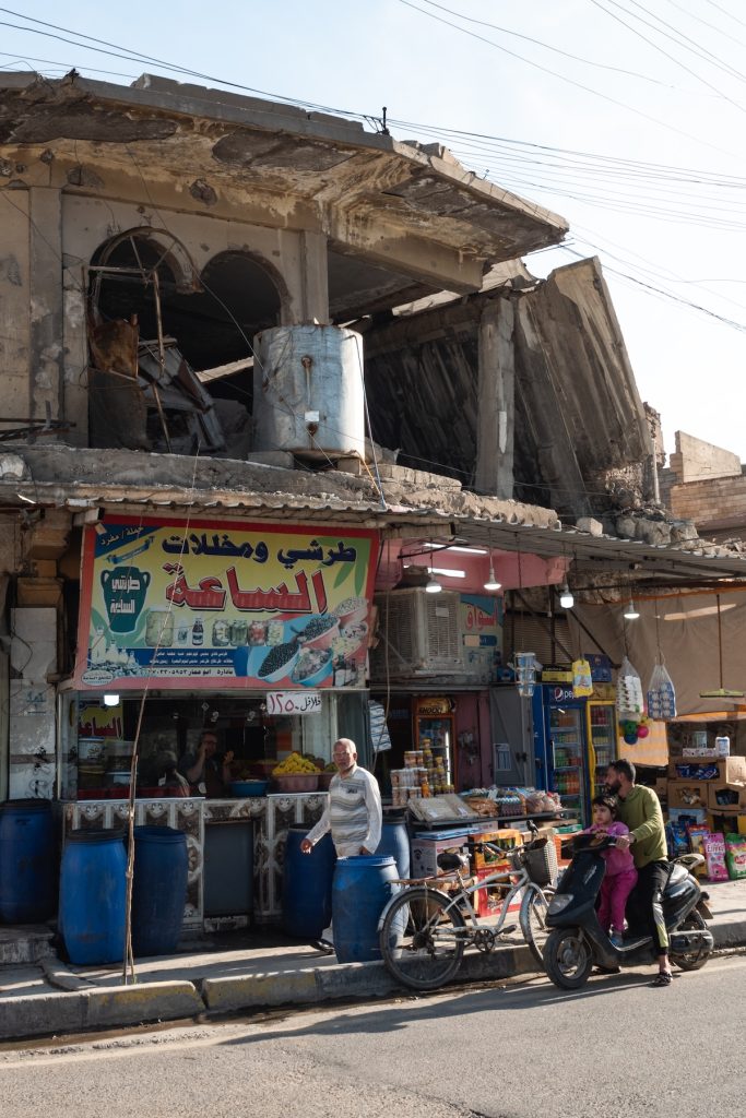 Le strade distrutte di Mosul ci scuotono fin dai primissimi istanti in cui entriamo nella città: edifici devastati che si ergono accanto a scene di vita quotidiana, giocattoli di bambini ancora visibili tra le macerie di quelle che un tempo erano case; segni di proiettili, colpi di mortaio e missili disseminati sui muri della città vecchia.