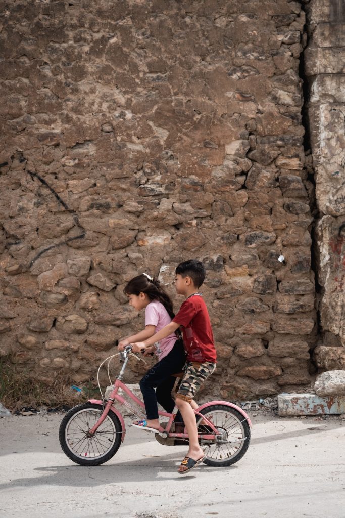 Bambini che vanno in bicicletta.